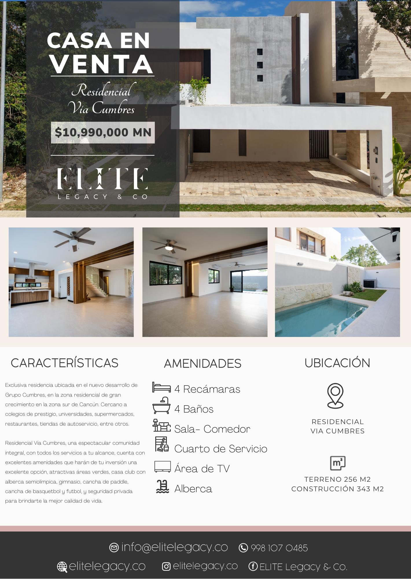 Residencial Vía Cumbres, una espectacular comunidad integral, con todos los servicios a tu alcance, cuenta con excelentes amenidades que harán de tu inversión una excelente opción, atractivas áreas verdes, casa club con alberca semiolímpica, gimnasio, cancha de paddle, cancha de basquetbol y futbol, y seguridad privada para brindarte la mejor calidad de vida.