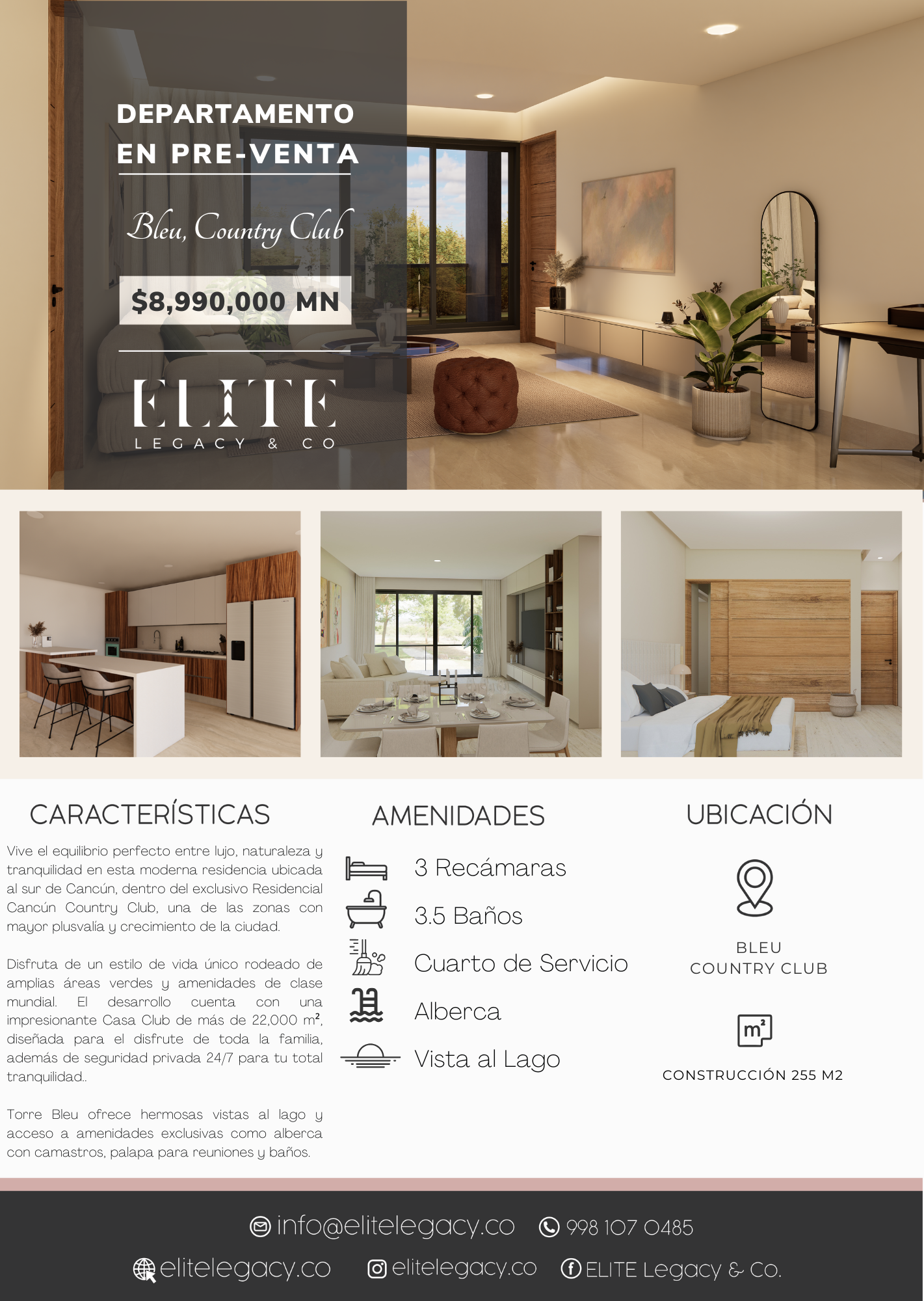 Amplio departamento con acabados de alta calidad, ubicado estratégicamente dentro del residencial. Ofrece hermosas vistas al lago y acceso a amenidades exclusivas como alberca con camastros, palapa para reuniones y baños.