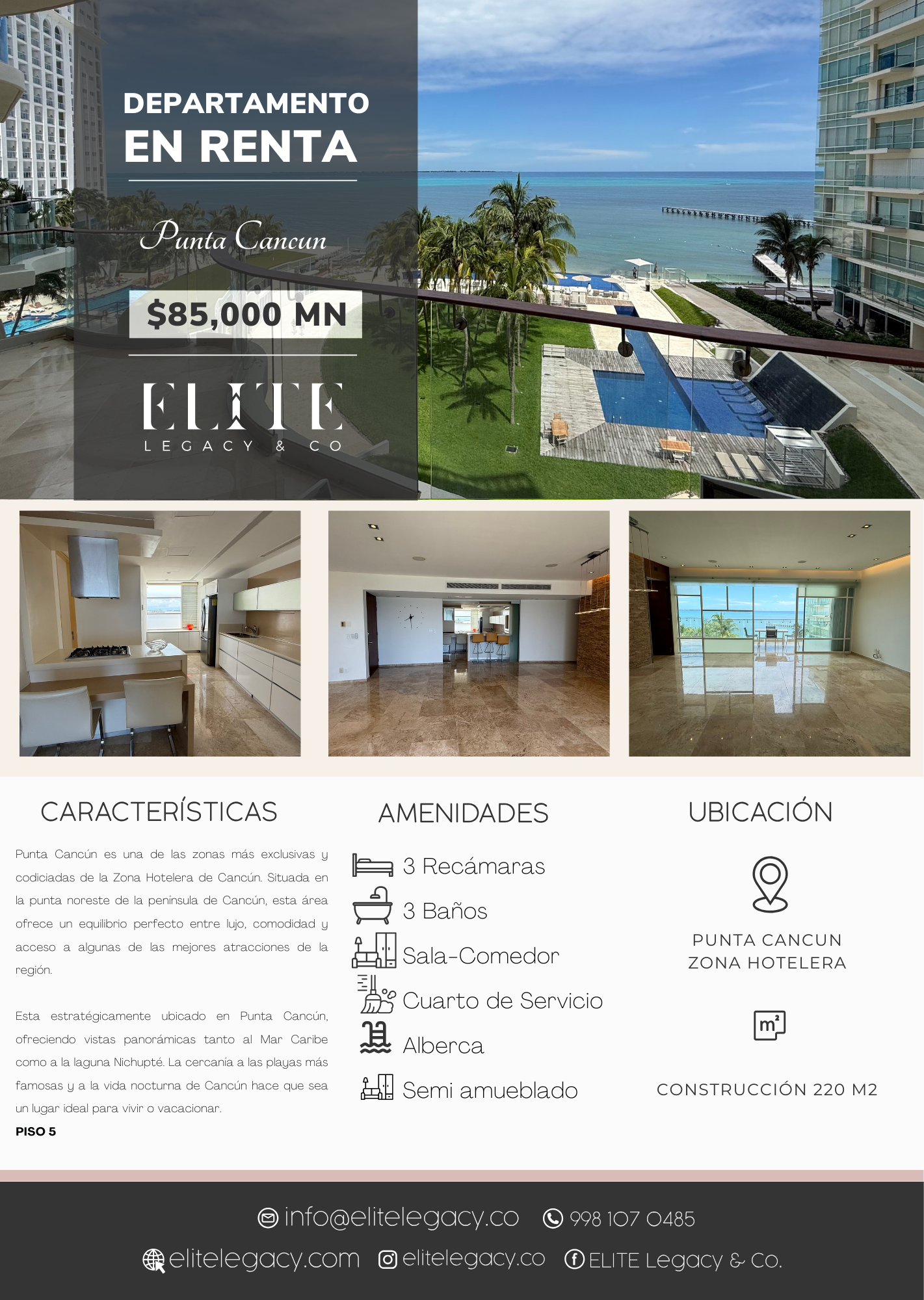Esta estratégicamente ubicado en Punta Cancún, ofreciendo vistas panorámicas tanto al Mar Caribe como a la laguna Nichupté. La cercanía a las playas más famosas y a la vida nocturna de Cancún hace que sea un lugar ideal para vivir o vacacionar.