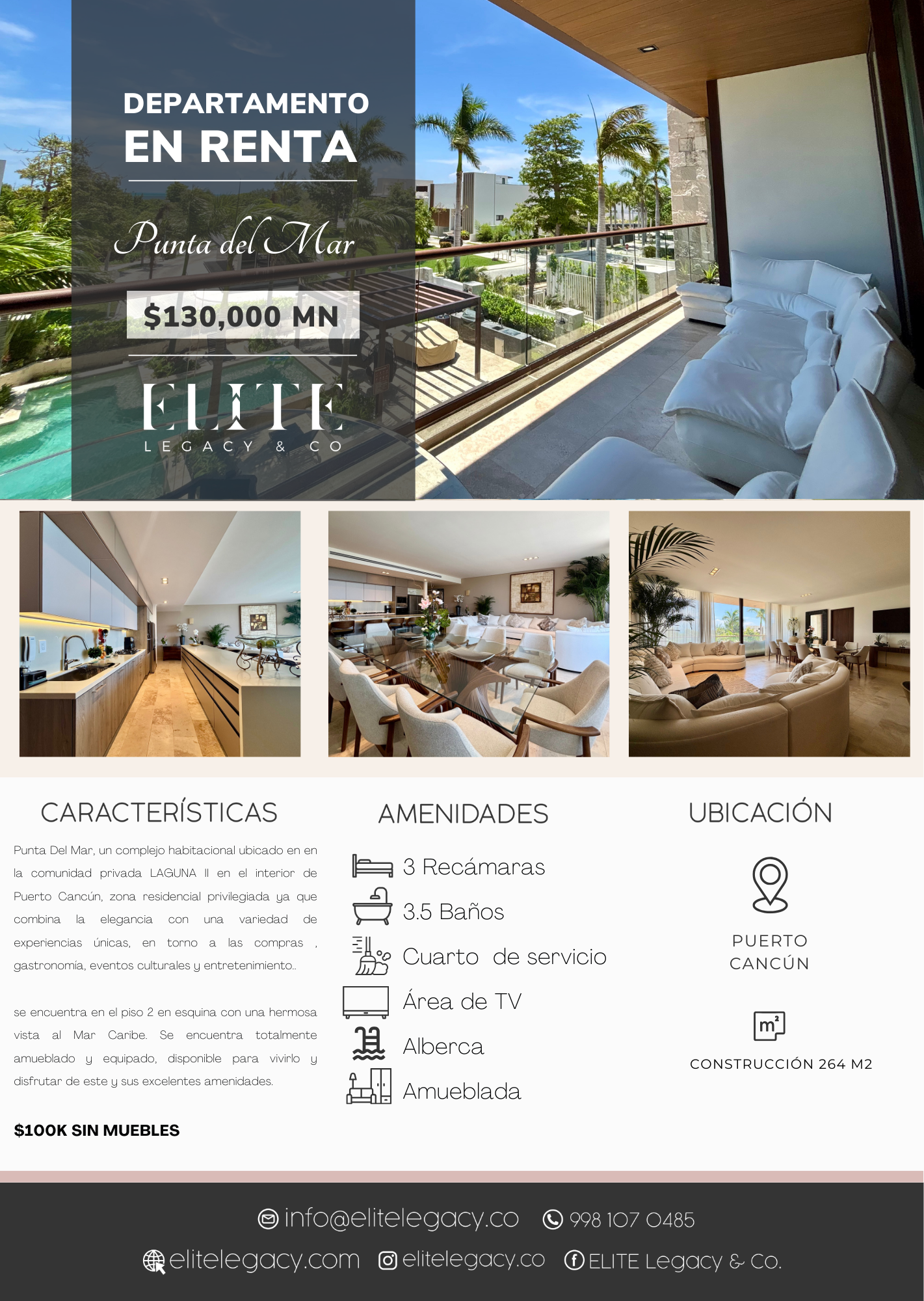 Este departamento se encuentra en el piso 2, desde donde se aprecia el Mar Caribe. Se encuentra totalmente amueblado y equipado, disponible para vivirlo y disfrutar de este inmueble y sus excelentes amenidades.