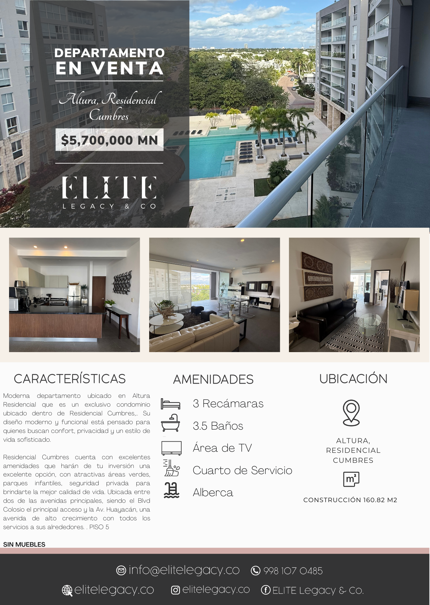 Residencial Cumbres cuenta con excelentes amenidades que harán de tu inversión una excelente opción, con atractivas áreas verdes, parques infantiles, seguridad privada para brindarte la mejor calidad de vida. Ubicada entre dos de las avenidas principales, siendo el Blvd Colosio el principal acceso y la Av. Huayacán, una avenida de alto crecimiento con todos los servicios a sus alrededores.